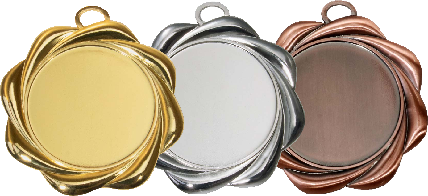 Medaille Metall Ø 70mm Komplettmetall Material Zamak galvanisiert 3 Tönungen  Gold-Silber-Bronze Gewicht 39 Gramm Ø 70mm Beschriftung oder Logo  Frontseite 50mm Front für 50mm Emblem